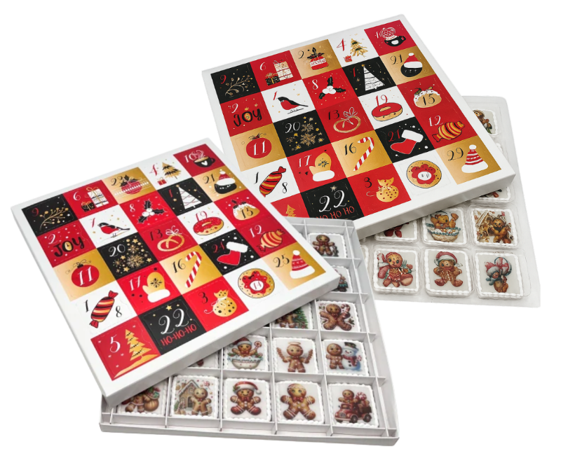 Elegantní krabička s 25 políčky, do kterých můžete vložit malé sladkosti – perníčky, pralinky nebo jiné dobroty z vašich oblíbených vykrajovátek. Skvělý jako originální mikulášský dárek nejen pro děti!