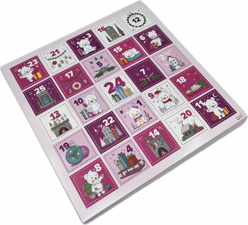 Adventní kalendář "MEDVÍDKOVÝ RŮŽOVÝ" 28x28x2 cmskladem 368 ks85 Kč/ ks70 Kč bez DPH