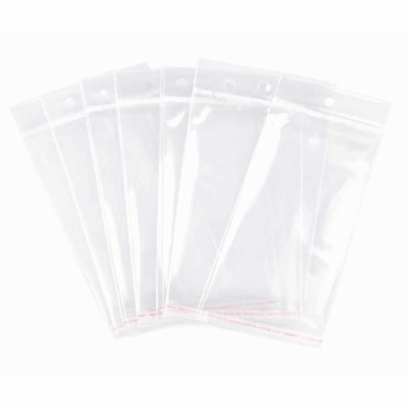 Celofánové sáčky 11x20 cm s lepicí lištou a závěsem 100 ks