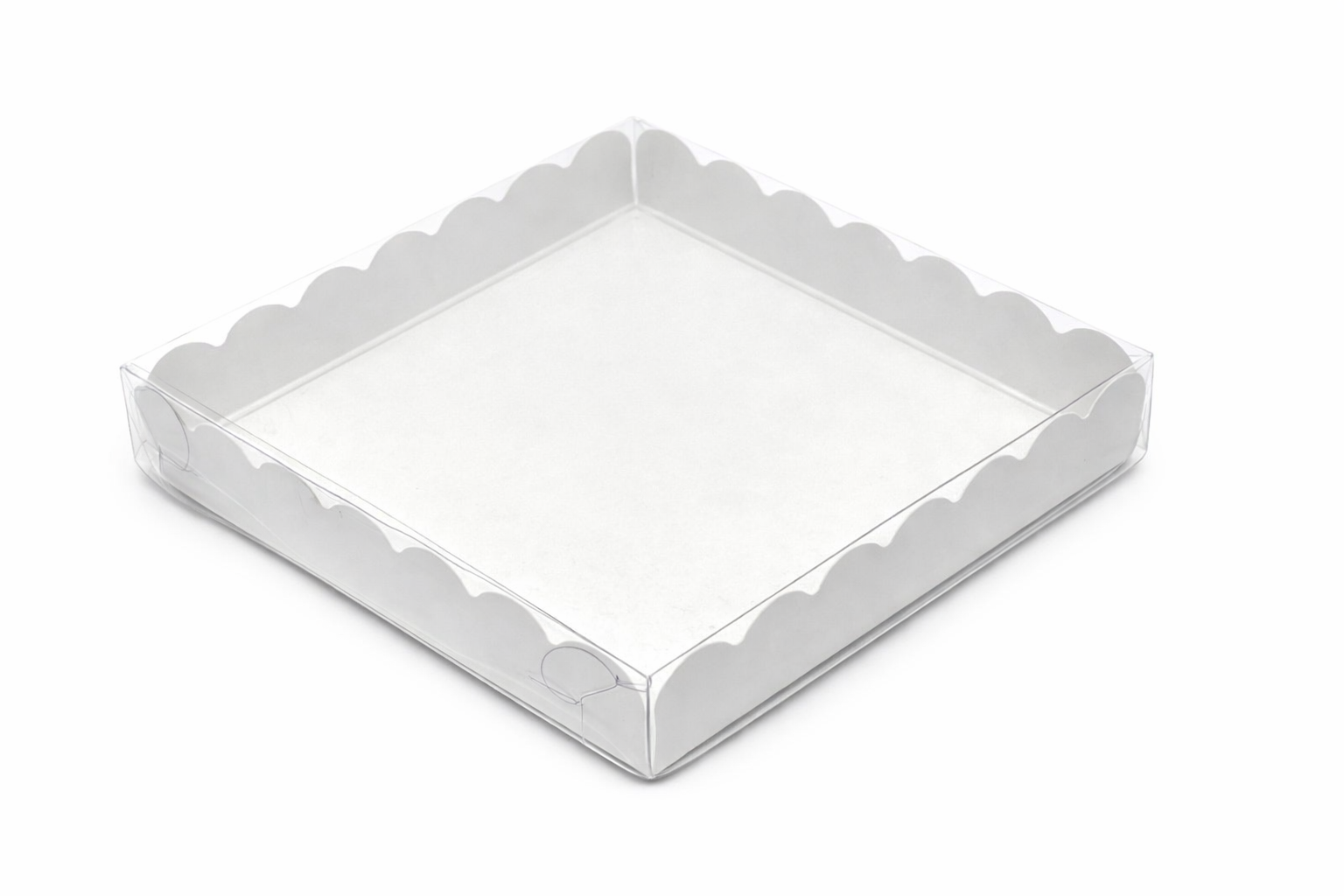 Bílá krabička s průhledným víkem 10×10×2,5 cm – laminovaná, s atestem
