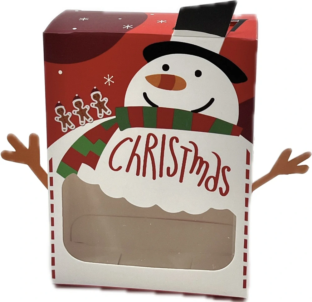 Krásná vánoční krabička s průhledem potěší děti, ale i dospělé. Je ideální na zabalení vánočního dárku nebo ji můžete naplnit dobrotami na Mikuláše. Vejdou se do ní třeba ponožky, menší kosmetika, bonbóny apod. Průhled je z průhledné fólie. Krabička má vtipné detaily v podobě výřezů po stranách.