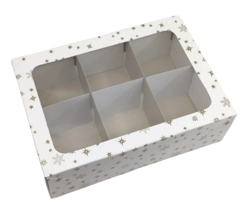 Vánoční krabička s mřížkou na 6 kouliček (8 cm) 28x19,5x9 cmskladem 72 ks65 Kč/ ks54 Kč bez DPH
