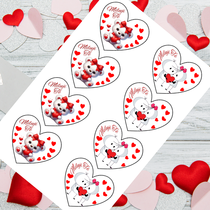 Zamilované srdíčko "Kreslený panáček a medvídek" srdce klasikaSkladem 49 bal170 Kč/ bal152 Kč bez DPH