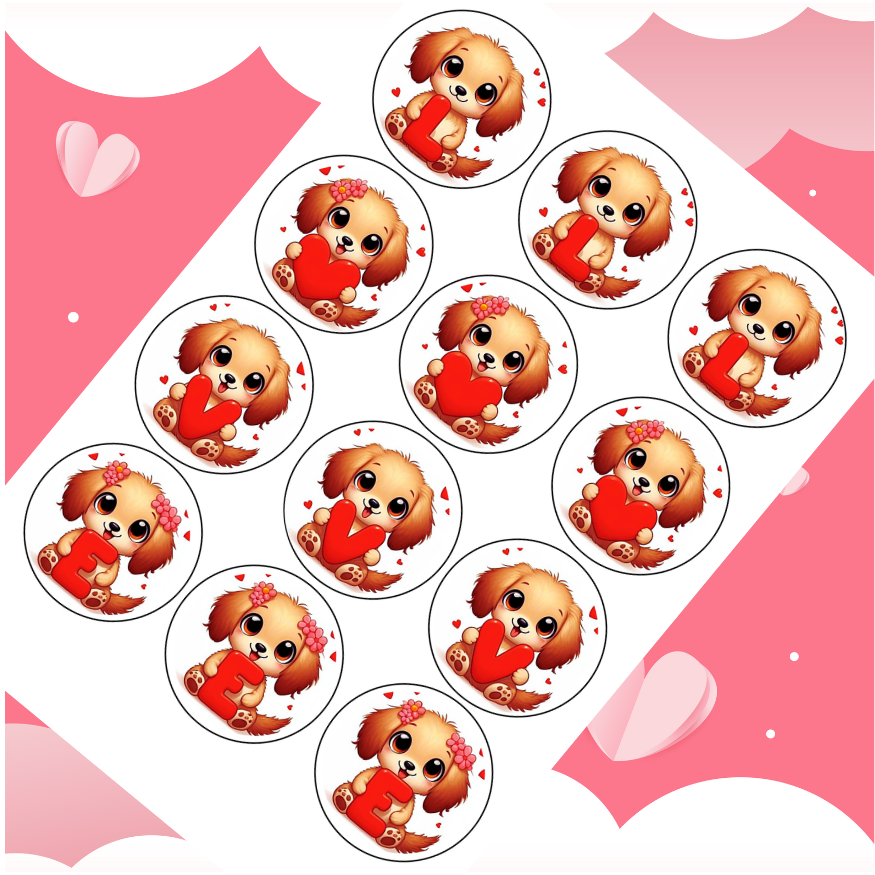 Dekorační profesionální jedlý papír s vyřezanými valentýnskými motivy v kulatém tvaru. Sada obsahuje různé romantické ilustrace vhodné pro zdobení dortů, zákusků, perníků a dalších cukrářských výrobků.